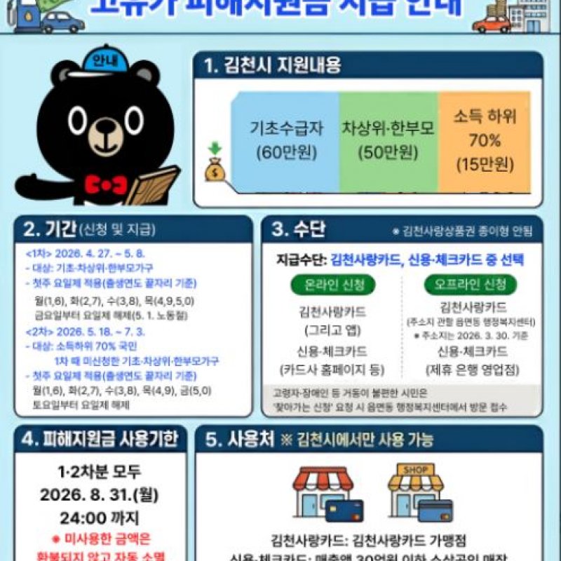 김천시, 오는 27일부터 ‘고유가 피해지원금 지급’ 본격 개시