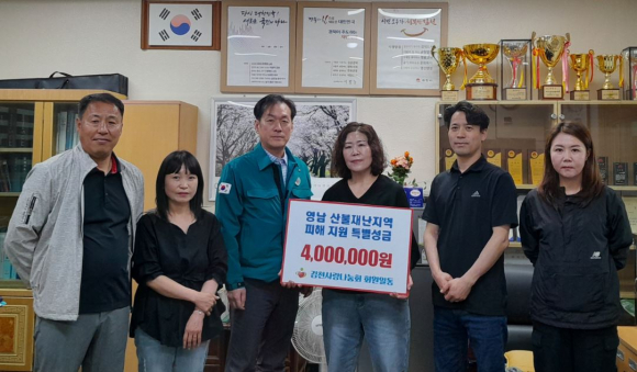 김천사랑나눔회(회장 최재성)는 지난 23일 대곡동행정복지센터를 방문하여 최근 발생한 대규모 산불로 피해를 입은 지역의 주민 지원을 위한 성금 400만원을 전달했다.