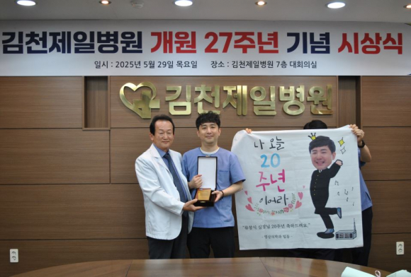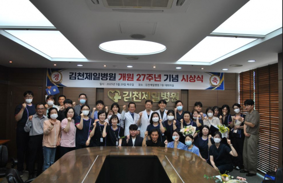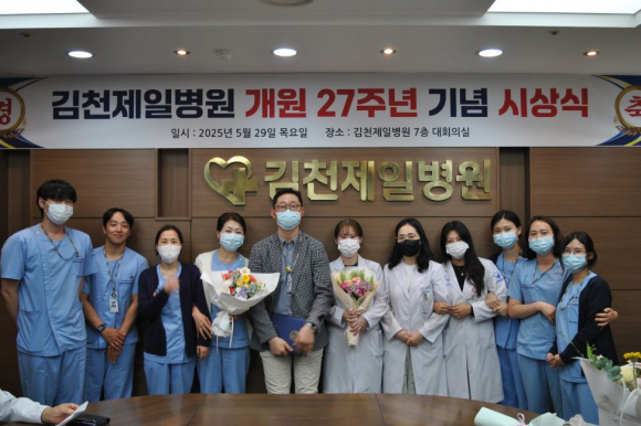❍ 의료법인 덕산의료재단 김천제일병원은 지난 29일 본관 7층 대회의실에서 개원 27주년 기념 시상식을 개최했다고 밝혔다.