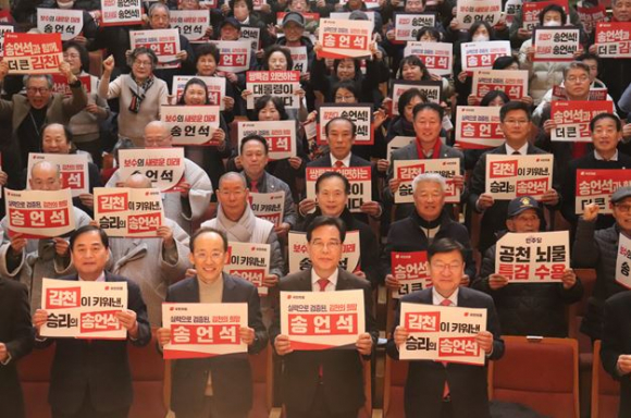 또한, 송언석 국회의원은 국민의힘 원내대표로서 이재명 정부와 여당의 부동산 정책 실패, 고환율·고물가·고금리로 대표되는 ‘3고(高) 위기’, 통일교 게이트, 공천 뇌물 의혹, 야당 탄압 특검 등의 문제점을 강도 높게 지적하고, 시민들과 함께 통일교 특검과 공천 뇌물 특검 수용을 촉구하는 규탄대회를 진행했다.