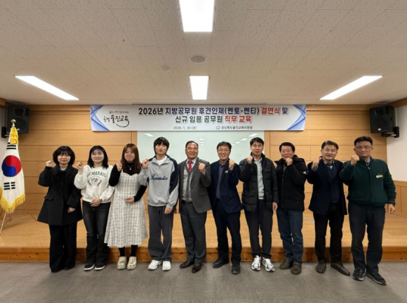 □ 경상북도울진교육지원청(교육장 이기협)은 1월 30일(금) 울진교육지원청 3층 영재교육원에서 2026년 지방공무원 후견인제(멘토-멘티) 결연식 및 신규 임용자에 대한 직무교육을 실시하였다.