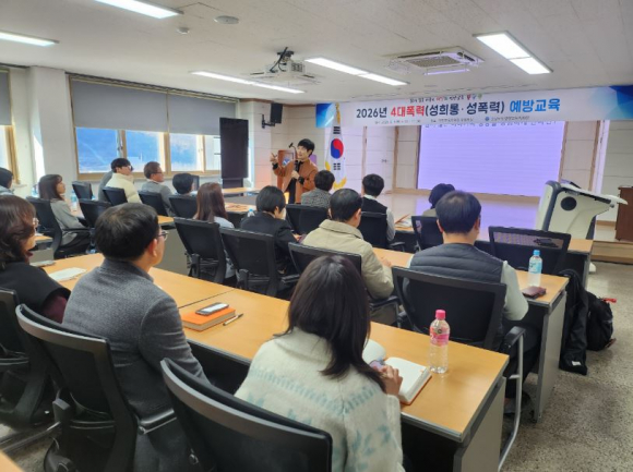 □ 영양교육지원청(교육장 박근호)은 2월 3일(화) 대회의실에서 영양교육지원청 및 도서관 직원을 대상으로 폭력(성희롱·성폭력) 예방교육을 실시했다.