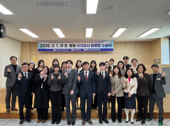 경상북도의성교육지원청(교육장 이우식)은 2월 19일(목) 오후 1시 30분, 의성교육지원청 3층 중회의실에서 2026. 3. 1.자 초·중등 신규교사 임명장 수여식을 열고 신규교사들의 힘찬 출발을 응원했다.