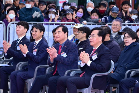 김천시(시장 배낙호)는 2월 27일 국가철도공단 주최로 김천역 광장에서 「남부내륙철도 김천역사 신축 기념식」을 개최했다.