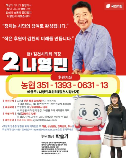 나영민 후보는 이번 인선에 대해 “이는 단순한 후원회 구성이 아니라 김천이 가진 문화자산을 도시 브랜드로 확장하는 선언”이라며