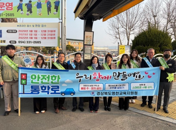 경상북도영천교육지원청(교육장 신봉자)은 2026년 3월 17일(화) 금호초등학교 교문 앞에서 영천경찰서 등 유관기관과 협력하여 안전한 교통문화 정착 및 안전한 통학로 만들기를 위한 교통안전 캠페인을 실시하였다.