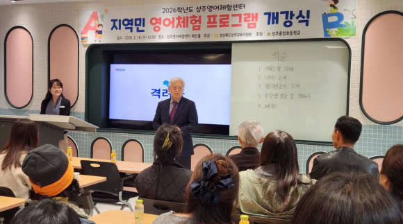 □ 경상북도 성주교육지원청(교육장 김시용) 산하 성주영어체험센터는 지역민의 영어 의사소통 능력 향상과 평생학습 문화 확산을 위해 「2026학년도 지역민 영어 회화 프로그램」 개강식을 성주영어체험센터 메인홀에서 개최하였다.