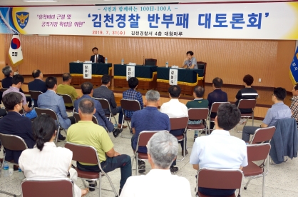 [밝은미래신문=뉴스팀]지난달 31일, 김천경찰서 4층 대회의실에서는 김천시 관내 공공기관, 상공인, 시민단체 감사업무 담당 직원, 경찰 등 100여명이 참석한 가운데 유착비리 근절 반부패 대토론회를 개최하였다.