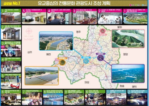 이번에 선정된 안동시는 하회마을권역, 원도심권역, 안동댐권역, 도산권역 등 4개 권역을 사업대상지로 유교중심의 전통문화 자원과 세계문화유산을 활용하여 글로벌 관광도시브랜드화로 외국인 관광객을 유치하고 인근 8개 시군과 협업해 지역관광을 활성화 하겠다는 전략이다.