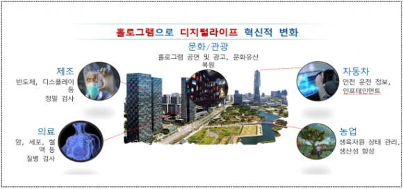 이러한 홀로그램 기술은 기존의 가상현실(VR), 증강현실(AR)을 넘어 5세대 이동통신(5G)시대에 4차 산업혁명 선도기술과의 융.복합을 통해 의료, 교통, 디스플레이 등 다양한 분야에서의 초실감 콘텐츠 서비스를 주도하는데 기여해 초실감시대의 도래를 견인하는 핵심기술이다.