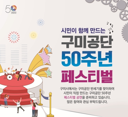 [밝은미래신문=뉴스팀]구미시는 구미공단 반세기를 맞이하여 시민이 참여하고 즐길 수 있는 축제의 장을 마련하기 위하여 「시민이 함께 만드는 구미공단 50주년 페스티벌」을 준비하고 있다.