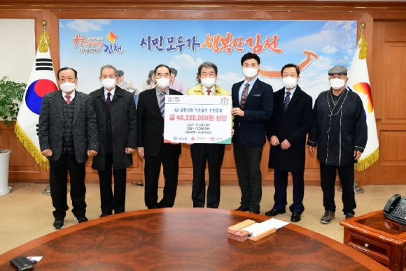 지난 22일 김천신협(이사장 박원효)은 김천시청을 방문하여 연탄2만장, 김치7kg 400박스, 과자키트 300박스 등 4,000만원 상당의 이웃돕기 후원물품 전달식을 가졌다.이날 전달식에 참여한 박원효 이사장은 “소외되고 어려운 이웃들이 따뜻하고 훈훈한 연말연시가 되었으면 하는 마음에 준비하게 되었다. 아울러 바쁜 일상에도 불구하고 신협과 함께 해주신 많은 봉사자들께 감사드린다.”고 전했다. 김충섭 김천시장은 “매년 꾸준한 나눔으로 Happy Together 김천운동 실천에 동참해주신 김천신협 임직원과 자원봉사자분들께 깊은 감사를 드린다. 코로나19로 힘든 시기이지만 모두의 온정이 모여 따뜻한 겨울을 보낼 수 있을 것.”이라고 밝혔다.한편 김천신협은 매년 관내 저소득가정의 따뜻한 겨울을 위해 후원물품을 기탁하고 있으며, 이날 전달된 후원물품은 읍면동주민센터를 통해 관내 저소득가정으로 전달될 예정이다.