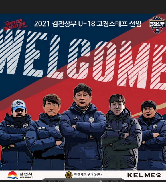 U-18 김호영 감독, 박태민 코치, 정요한 코치, 한상수 GK 코치, 박대렬 의무트레이너 U-15 하승룡 감독, 정종희 코치, 조형준 코치, 유근모 GK 코치, 김동완 의무트레이너2021 시즌 창단한 김천상무프로축구단(대표이사 배낙호) U-18, U-15 유소년 팀을 이끌 코치진이 꾸려졌다. 김천상무프로축구단 U-18 사령탑은 김호영 감독이다. 김호영 감독은 1996년 수원삼성프로축구단 선수를 시작으로 1998년 올림픽 상비군 대표를 거쳐 2001년 경찰청 축구단, 2003년 일본 야마가타 몬테디오 선수를 지냈다. 이후 2009년부터 2년 간 경찰청 축구단 코치, 2011년부터 4년 간 스포츠토토 여자 축구단 코치, 2015년부터 2년 간 성남FC 코치로 역임했다. 2016년부터 지난해까지는 상주상무 U-18 용운고 감독으로 팀을 이끌었다. 올 시즌 지도자로 첫 발을 내딛은 박태민 코치는 지난해까지 성남FC 선수로 활약했다. 박태민 코치는 2008년 수원에서 데뷔해 10년 동안 K리그 173경기에 출장해 5득점 8도움을 기록했다. 정요한 코치는 2015년부터 2년 간 용인시청(前 내셔널리그)에서 선수 생활을 했고 2019년부터 지난해까지 경북비산초 코치로 역임했다. 한상수 GK코치는 2011년부터 2015년까지 수원삼성 U-15, 2016년부터 2018년까지 수원삼성 U-18 GK코치를 맡았다. 2019년 통진고 GK코치, 2020년 상주상무 U-18 용운고 GK코치를 지냈다. 박대렬 의무트레이너는 2014년 기아타이거즈, 2015년 국민체육진흥공단 다이빙팀 의무 트레이너로 근무했다. 2015년부터 2020년까지는 상주상무 U-18 용운고, U-15 함창중 의무트레이너를 맡았다. 김천상무프로축구단 U-15 유소년 팀은 하승룡 감독이 이끈다. 하승룡 감독은 2005년 울산현대 입단 후 2005년부터 2007년 한국철도공사, 2008년부터 2009년 천안시청, 2009년부터 2011년까지 한국철도공사 선수로 활약했다. 2012년부터 2015년까지는 상주상무 U-15 함창중 코치를 맡았고 2016년부터 2020년까지 상주상무 U-15 함창중 감독을 역임했다. 김천상무 U-15 유소년 팀에서 지도자 생활을 시작하는 정종희 코치는 2014년 전북현대 입단 후 2015년 울산 현대미포조선(前 내셔널리그), 2016년부터 2017년 천안시청, 2018년 김해시청, 2019년부터 2020년 울산시민축구단에서 선수 생활을 했다. 조형준 코치는 2019년 울산시민축구단에서 선수 생활 이후 기장축구센터 U-12에서 코치로 선수들을 지도했다. 유근모 GK코치는 2019년부터 2020년까지 인천 서구FC U-15 GK코치로 역임했다. 김동완 의무트레이너는 2019년 상주상무 U-15 의무트레이너, 천안 목천고등학교 사이클팀 의무트레이너를 맡았다. 한편, 코칭스태프 인선을 마친 김천상무 U-18, U-15 유소년 팀은 2021 시즌을 준비하며 구슬땀을 흘리고 있다.