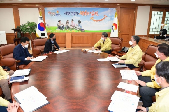 이 자리에서 김충섭 시장은 정부의 취지에 맞추어 교통사고 줄이기를 위해 우리시에서 추진할 사항은 최대한 추진하겠다면서, 대구통합신공항확정에 따른 접근성 개선을 위한 국도59(김천~선산간) 도로확장, 국도대체우회도로의 마지막 구간으로 남아있는 양천~대룡간 국도대체우회도로의 조속 시행, 국가하천 감천 배다리 가동보 설치를 위한 협의 등 부산청에서 추진 중인 사업에 대해 적극적인 검토를 건의하며 협조를 당부 하였다