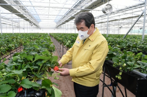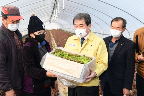 김충섭 김천시장은 지난 5일 코로나-19로 인해 어려운 시기를 겪고 있는 민생 현장 방문의 일환으로 관내 시설채소 재배 농가를 방문하여 현장을 살펴보았다.지난해부터 유행한 코로나-19의 장기화로 인한 농가 인력 부족, 소비심리 위축, 고병원성 조류인플루엔자(AI) 등으로 농산물의 안정적인 생산 기반이 흔들리고 있는 상황에서 재배 농가의 안정적인 생산과 공급이 무엇보다 중요한 시점이다.