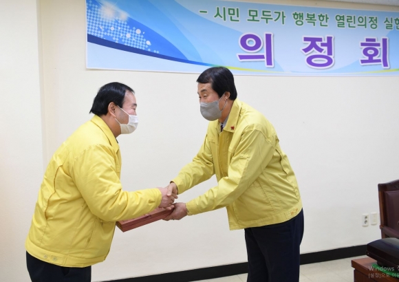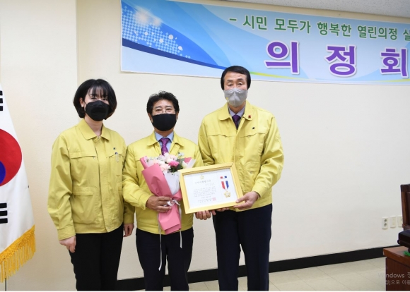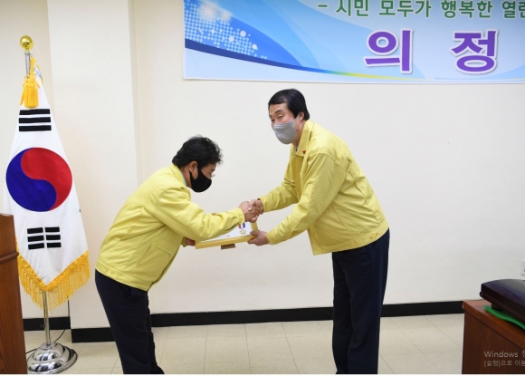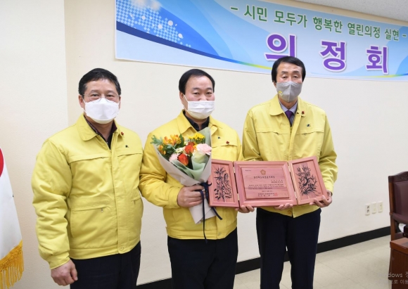 김천시의회(의장 이우청) 이명기 의회운영위원장과 박영록 행정복지위원장이 의정봉사상 수상의 영광을 안았다.이명기 의회운영위원장은 전국시군자치구의회의장협의회에서 수여하는 ‘지방의정봉사상’을, 박영록 행정복지위원장은 경상북도시군의회의장협의회에서 수여하는 ‘경상북도 의정봉사대상’을 각각 수상하였으며 코로나19 확산방지 차원에서 따로 시상식은 갖지 않고 2월 4일 의정회에서 이우청 의장이 대리시상 하였다.