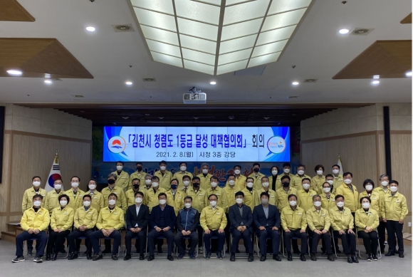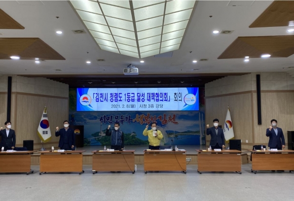 김천시(시장 김충섭)는 지난 8일 시청 3층 강당에서 청렴도 향상을 위해 간부공무원과 민간단체로 구성된 ‘김천시 청렴도 1등급 달성 대책협의회’를 발족하고 제1차 회의를 개최했다.이창재 부시장이 위원장인 대책협의회는 국소장, 실과소장, 공무원노조 김천시지부장 및 공사·용역, 인·허가 등 외부청렴도 측정과 관련된 4개 단체(김천시전문건설협회, 김천시건축사협회, 김천상공회의소, 김천시산림조합)로 구성되었다.