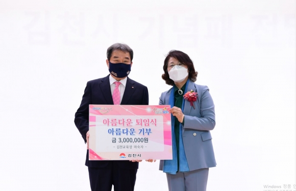 김천의 교육발전과 글로벌 인재육성을 위해 김천교육지원청 마숙자 교육장이 김천시인재양성재단(이사장 김충섭)에 장학기금 삼백만원을 기탁했다.김천교육지원청 마숙자 교육장은 25일 지난 40년간 몸담았던 교직생활을 떠나는 퇴임식에서“지역 학생들에게 조금이나마 도움이 될 수 있기를 바란다며 적은 금액이지만 마음은 항상 김천 교육과 함께 하고 있다며 김천지역 인재 육성을 위해 써 달라며 장학기금을 기탁하게 됐다”고 말했다.김충섭 이사장은“마숙자 교육장은 항상 지역 학생들을 돌보기에 여념이 없으셨을 뿐 아니라, 김천 교육 발전에도 힘쓴 훌륭한 교육자이시고, 교직생활을 떠나시면서도 지역의 후학들을 위해 소중한 마음을 장학기금으로 기탁하여 주시니 정말 감사 드린다”며 고마움을 전했다. 한편, 마숙자 교육장은 평소 온화한 인품과 따뜻한 감성을 가진 여성 리더로써 교육 가족과 학생들을 살피고 지역 학생들의 아픔을 보듬는 교육자로서의 도덕성을 두루 갖춘 교육장이라는 평가를 받아 왔다.김천시인재양성재단 장학기금은 단체, 출향인, 기업체, 공공기관 등 많은 시민들의 관심과 협조로 현재까지 장학기금이 212억7천2백만원이 조성됐다.