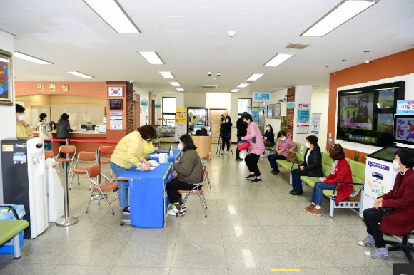 보건소에서는 안전한 접종을 위하여 2월25일 늦게까지 사전연습 등을 통하여 접종에 차질이 없도록 만반의 준비를 하였으며, 많은 사람들의 기대 속에서 2월26일 접종을 시행했다. 첫 접종대상자로 신청한 관내 요양시설인 우리요양원외 2개소, 20명을 대상으로 ➀신청자확인, 발열체크 ➁문진표작성 ➂의사예진 ➃접종 ➄접종 후 이상반응 관찰 등 5단계를 거쳐 접종을 실시하였으며 접종 후 20분간 관찰하는 중간에도 발열 체크, 이상반응 및 주의사항에 대하여 교육을 실시하였으며 직원이 상시 모니터링을 하였다.