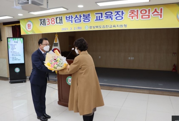 경상북도김천교육지원청(교육장 박삼봉)은 3월 2일 오전 10시 3층 대회의실에서 「제38대 박삼봉 교육장」취임식을 가졌다. 박삼봉 신임교육장은 김천 출신으로 대구교육대학교를 졸업하고 한국 교원대학교 대학원 과학교육학 석사과정을 수료하였다. 1984년 문경 호계초등학교에서 교직 생활을 시작하여 학교현장에서의 26년 경력을 바탕으로 김천부곡초 교감 및 교장·고령교육지원청 장학사·경상북도교육청연수원 교육연구사·영양교육지원청 교육지원과장·경상북도교육청연수원 초등연수부장으로 역임했다.