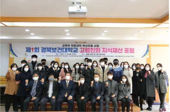 경북보건대학교(총장 이은직)는 지난 2021년 2월 19일(금) 대학의 대회의실에서 ‘제1회 경북보건대학교 고령친화 지식재산 포럼’을 개최하였다. 경북보건대학교의 고령친화 지식재산 포럼은 혁신지원사업단 창의융합교육지원센터(센터장 한남경)가 주관하고 구미상공회의소 (재)경북서부지식재산센터, (사)대한고령친화산업학회, 안전행정부 (사)한국안전진흥협회, (사)3D프린팅산업협회, 복지용구협회의 후원을 받아 방역수칙을 준수한 가운데에 성황리에 개최되었다.