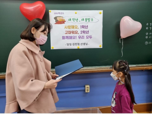 대룡초등학교(교장 박재일)는 2021학년도 입학식과 시업식을 담임 선생님 주관으로 각 교실에서 실시하였다. 담임 선생님들께서는 사전에 미리 준비하여 각 학년만의 특색있고 재미있는 시간을 가졌다. 학부모 참여는 제한되었지만 작은 학교만의 특색을 살린 학생이 주인공이 되는 소중한 시간이었다. 특히, 대룡초 총동창회(회장 이충기)에서는 입학생 장학금 100만, 전입생 50만을 전달하여 작은 학교 살리기 사업에 동참하고 자랑스런 대룡인이 됨을 축하하였다. 대룡초총동창회에서는 축하 장학금으로 학생들의 사기를 응원하는 사업을 매년 해 오고 있다. 박재일 교장선생님께서는 사회적 거리두기로 인하여 새로 지은 체육관에서 다 함께 축하하는 할 수 없지만, 예술꽃 씨앗학교에서 코로나 예방수칙을 잘 지키면서 다양하고 새로운 프로그램으로 보람있고 행복한 학교생활을 잘 하라고 당부하였다.