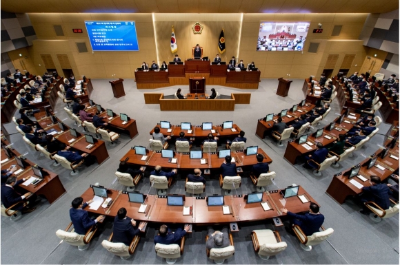 경상북도의회(의장 고우현)는 3월 5일부터 12일간의 일정으로 제322회 임시회를 열고 도정질문, 2020회계연도 결산검사위원 선임, 각종 민생조례안 등을 처리할 계획이다.첫째 날인 3월 5일 제1차 본회의에서는 2020회계연도 결산검사위원을 선임하고, 올해 첫 도정질문에서는 황병직(문화환경), 정세현(교육), 이종열(기획경제) 등 3명의 의원이 도정과 교육행정 전반에 걸쳐 현안사항과 문제점을 지적하고, 현장의 목소리를 전달함은 물론, 바람직한 정책방향도 함께 제시할 계획이다.또한, 이번 임시회에서는“경상북도 사회적경제기업제품 구매촉진 및 판로지원에 관한 조례안”등 25개의 민생관련 안건을 소관 상임위별로 심도있게 심사하고 마지막 날인 3월 16일 제2차 본회의에서 최종 처리할 예정이다. 한편, 고우현 의장은 개회사를 통해 “코로나19로 인해 봄의 기운을 맘껏 누리지 못하는 춘래불사춘의 상황이지만, 각 분야에서 최선을 다해 주시는 공직자와 의료진, 그리고 300만 도민들의 적극적인 협조로 조금씩 일상회복의 희망이 보인다”며 감사의 인사를 전하고,아울러 “통합신공항특별법이 조속히 제정되어 도민들의 희망이 사라지지 않도록 대책을 강구하고, 개교 후 학생건강과 산불 등 재난안전관리에 최선을 다해주시기 바란다”고 당부했다.