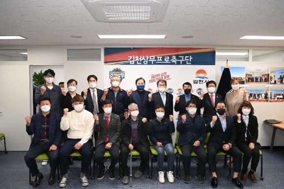 또한 ㈜아이티 노봉천 대표는 선수들의 부상 방지를 위해 1천5백만원 상당의 발목 스트레칭 의료기기를 후원했다. 지난 1월 최한동 후원회장의 2천만원 후원금 전달을 시작으로 김천상무프로축구단에 대한 후원의 물결이 끝없이 이어지고 있다. 구단주 김충섭 김천시장은 “첫 발을 내딛은 김천상무에 대한 시민들의 관심에 감사하다. 김천 시민들의 관심과 성원이 헛되지 않도록 최선을 다해 김천상무가 발전할 수 있도록 구단주로서 지원을 아끼지 않겠다”고 전했다.위드엔지니어링 임은호 대표는 “김천을 연고로 하는 프로축구단에 후원을 할 수 있는 기회가 생겨 영광이다. 김천상무프로축구단에 대한 시민들의 관심이 남다른 만큼 지역을 대표하는 프로축구단으로 거듭나길 바란다”고 말했다. 후원금 전달식 이후 김충섭 구단주는 김천상무 홈 경기장으로 쓰일 김천종합운동장을 방문해 현재 진행 중인 가변석 설치작업과 새 전광판 교체 작업 및 각 시설물들을 둘러보며 안전하고 편안한 홈 구장에서 팬들이 만족스럽게 관람할 수 있도록 작업을 진행할 것을 강조했다. 한편, 김천상무프로축구단은 오는 14일(일) 오후 6시 30분 대전월드컵경기장에서 ‘하나원큐 K리그2 2021’ 3R 대전하나시티즌과 원정경기를 치른다. 내달 4일(일) 오후 4시 김천종합운동장에서는 ‘하나원큐 K리그2 2021’ 5R FC안양과 홈 개막전을 앞두고 있다.