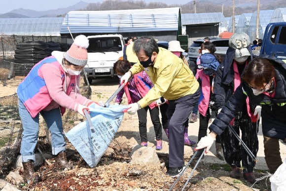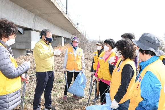 김천시(시장 김충섭)는 봄을 맞이하여 코로나-19 장기화로 침체된 분위기를 일신하고자, 직지천 주변에 지난 겨울동안 불법으로 버려진 각종 폐기물과 생활 쓰레기를 수거하는 환경정화 활동을 대대적으로 실시하였다.이번 청결활동은 3월 11일, 봉산면 덕천리 백운천 합류부를 시점으로 조각공원까지 약 8km 구간을, 일반시민과 각종단체 회원, 공무원 등 700여명의 인력이 참여하였으며, 하천 바닥에 버려진 대형폐기물 등을 수거하기 위하여 굴삭기 2대와 청소차 8대 등의 중장비도 동원되었다.