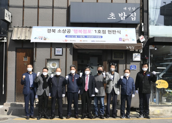 지난11,김천시 평화시장의 ‘대성암본가초밥집’이 경상북도에서 추진하는 「소상공 행복점포 육성사업」의 일환으로 「행복점포 1호」 현판식을 가졌다.코로나19로 어려움을 겪는 소상공인을 위로하기 위하여 하대성 경상북도 경제부지사, 이창재 부시장, 이우청 시의장, 박판수 도의원, 이복상 시의원, 이선명 시의원, 서형석 김천시 소상공인연합회장, 전창록 경북경제진흥원장 등 10여 명의 관계자가 참석해 「행복점포 1호」 현판식을 기념했다.3대째 가업을 이어온 ‘대성암본가초밥집’은 오랜 전통을 지닌 우수한 맛과 좋은 평으로 평화시장의 대표 맛집이다.