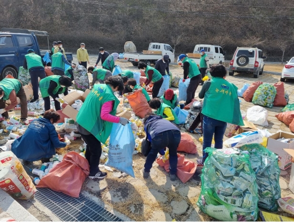 김천시 조마면 새마을남녀지도자(회장 김용섭, 부녀회장 임해옥)는 흙 살리기와 환경보호를 위해 농약 빈병 수거작업 및 분류작업을 15일 실시하였다. 이번 행사는 바쁜 시기에도 불구하고 회원 30여명이 조마면 체육공원에 모여 각 마을마다 모은 농약빈병을 전체 수거하여 농약병에 해당하지 않는 것을 다시 한 번 꼼꼼하게 분류하고 수거망에 담아 정리했다.이번 행사는『Happy together 김천』운동의 일환으로써 선진 시민의식 함양에 조마면 새마을이 앞장섰다. 또한 위성충 조마면장은 수거활동이 끝난 후 농촌지역 현장에서 겪을 수 있는 문제점을 해결할 수 있도록 노하우를 전수하였다.김용섭 새마을지도자회장은 “매년 꾸준한 수거활동과 농민들의 관심으로 버려지는 농약 빈병들이 줄어들고 있다. 청정조마를 만들기 위해 연중 수거를 하고 있는 만큼 태우거나 버리지 말고 각 마을별로 수거를 하여 적극 동참해 달라.”고 당부했다.또한, 위성충 조마면장은 “새마을 가족이 폐농약병 수거에 관심을 가지는 것이 조마면 환경에 큰 힘이 될 것이며『Happy together 김천』운동에 동참해 준 새마을협의회 회원들에게 매우 감사하다. 단체와 함께하는 환경행사를 지속적으로 시행하여 민관이 함께 주인의식을 가지고 깨끗한 조마면을 만들어가도록 노력하겠다.”고 하였다.