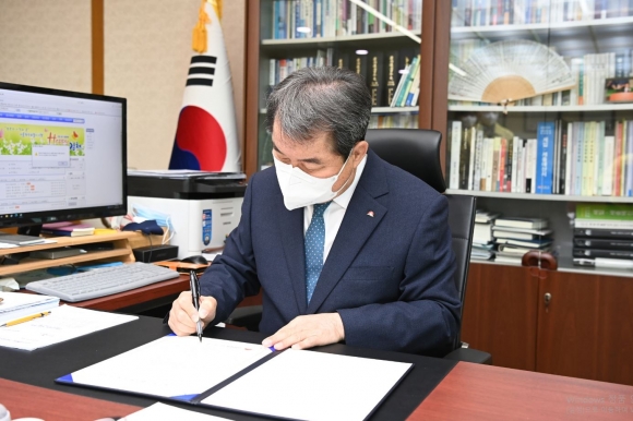 김천시(시장 김충섭)에서는 지난 18일 전국혁신도시협의회에서 추진하는 지역 균형발전과 혁신도시 활성화를 촉구하는 공동 건의문 채택을 위한 비대면 서명식에 동참했다고 밝혔다. 이번 공동건의문은 지방으로의 추가 이전을 골자로 하는 혁신도시 시즌2의 조속한 시행, 산학연 클러스터 용지 용도변경 허용, 혁신도시 연계도로 개설사업 국비 지원, 도시철도망 개설사업 국비 지원, 지역거점 혁신도시를 스마트시티 특화단지로 우선 선정 등 5개의 지역균형발전과 혁신도시 활성화 촉구 등의 내용을 담고 있으며, 코로나 19 예방을 위해 김천시를 비롯한 전국 9개 지역 11개 시군구 단체장이 각자 비대면 서명식을 개최하고 회장도시인 충북 진천군에서 수합하여 전달하는 방식으로 추진되었다. 김충섭 김천시장은 “이건 건의문을 통해 정부에서 의지를 갖고 혁신도시 시즌2를 적극적으로 추진하고, 산학연 클러스터 용지 용도변경을 허용하여 코로나 19 등으로 침체기를 겪고 있는 지방 혁신도시에 새로운 활력을 불어넣어주길 바란다.”고 말했다.