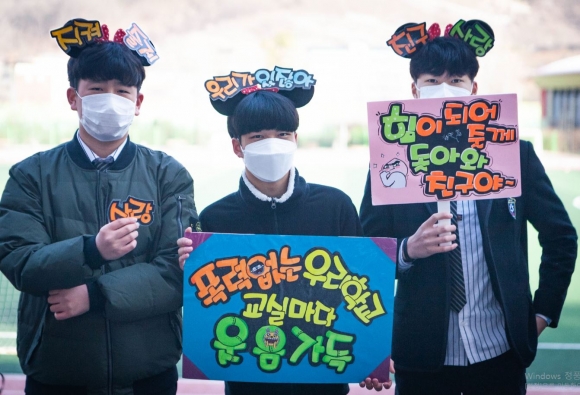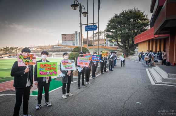 성의중학교(교장 안중기)는 2021년 3월 17일(수) 등굣길에 전교직원 및 전교생이 함께하는 신학기 상담주간 행사로 “학교폭력예방 및 학업중단예방 캠페인”행사를 실시하였다. 생활안전부와 Wee클래스가 학생회 임원, 또래상담도우미 학생들이 피켓을 들고 친구들이 학교에 흥미와 애착을 느끼고 사랑하는 마음을 갖자고 다짐하면서 학업중단예방에 대한 바른 인식을 깨닫도록 생각하는 계기를 마련하였다.