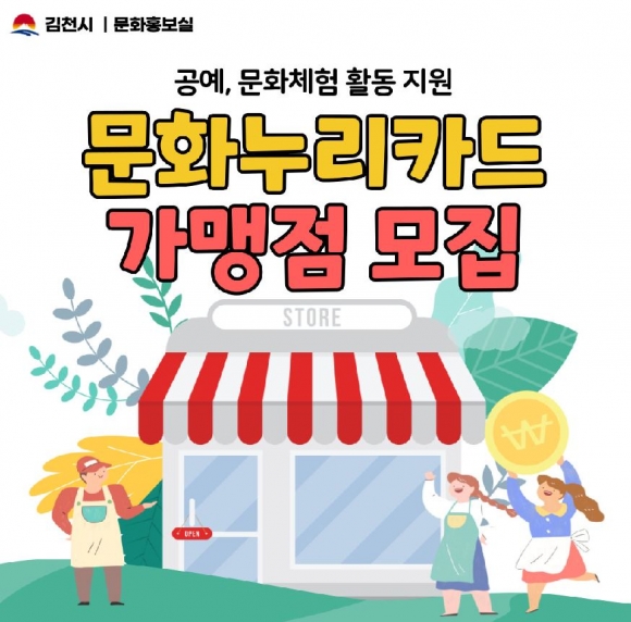 김천시(시장 김충섭)는 오는 2월 28일(월)까지 문화누리카드 이용 활성화를 위해 운영하는 ‘우리동네 체험촌’ 참여 가맹점을 모집한다고 밝혔다.우리동네 체험촌은 김천시 자체적으로 운영하는 사업으로 읍․면․동 행정복지센터와 문화누리카드 가맹점을 연계하여 문화누리카드 소지자를 대상으로 은공예, 목공예, 도예, 퀼트, 천연염색 등 찾아가는 문화예술 체험활동을 지원하는 사업이다.참여를 원하는 가맹점은 김천시청 문화홍보실로 방문하여 신청서와 프로그램 운영 계획서를 제출하면 된다. 양식은 김천시청 홈페이지에서 다운로드 가능하다.일반 사업자가 문화누리카드 가맹점으로 등록하려면 가맹점 등록 신청서, 서약서, 사업자등록증 또는 고유번호증 등 구비서류를 갖춰 문화누리카드 홈페이지에서 온라인 신청하거나 지역주관처(경북문화재단)에 방문 신청하면 된다.김천시 관계자는 “문화누리카드 이용자들의 편의를 위해 가맹점을 늘리고 쉽게 문화 체험을 할 수 있도록 서비스를 제공하고자 한다.”라며 “우리동네 체험촌이 문화체험 활동의 접근성을 높여 문화누리카드 이용 활성화에 기여하고 문화예술 사업이 활기를 띨 수 있길 바란다.”라고 전했다.한편, 문화누리카드는 6세 이상 기초생활 수급자 및 차상위계층을 대상으로 1인 연간 10만원의 지원금 충전하여 지원하는 카드로, 문화예술․국내여행․체육활동 분야에서 이용 가능하다. 카드 발급은 전국 행정복지센터 방문 및 온라인, 모바일 앱을 통해 신청하면 된다. 자세한 사항은 김천시 문화홍보실 문화예술팀(420-6325)로 문의하면 된다.
