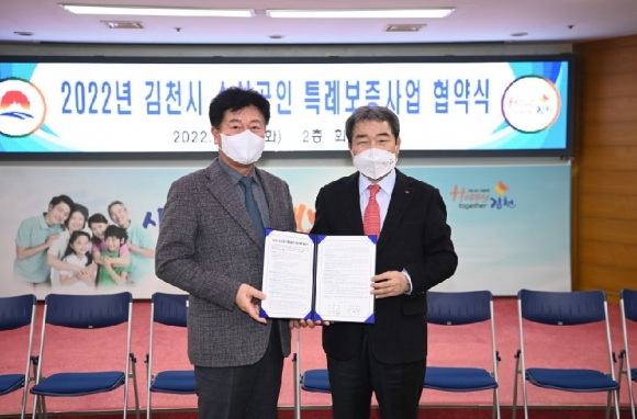 김천시(시장 김충섭)에서는 15일 김천시 소상공인 특례보증사업 추진에 따라 경북신용보증재단 및 관내 19개소 금융기관과 업무협약을 체결했다.해당 사업은 경기 불황으로 자금난을 겪는 우리 지역 소상공인들을 지원하는 내용으로, 신용보증재단의 100% 보증으로 최대 2천만원까지 융자가 가능하며, 2년간 이자 3%를 보전하고 있다.