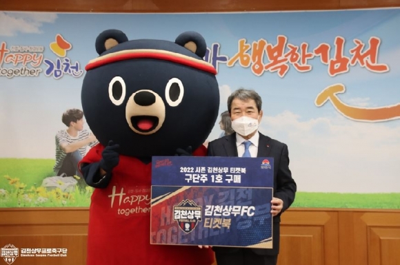 김천상무프로축구단(대표이사 배낙호)이 17일 ‘2022 시즌 티켓북’ 판매를 시작했다. 1호 구매자 김충섭 구단주는 티켓북 판매 당일 구매 의사를 밝히고 18일, 실제로 구매하며 김천상무의 발전과 홍보에 앞장섰다.2022 시즌 티켓북은 김천상무가 시즌권, 멤버십 대신 내놓은 정책이다.