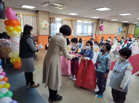 농소유치원(원장 우윤숙)은 2월 17일(목) 제 4회 졸업식 및 수료식을 개최했다. 코로나 방역수칙 준수를 위해 3, 4세 반의 수료식은 각 반에서 진행하였고, 졸업식은 강당에서 5세 유아들만 참석한 가운데 사회적 거리두기를 준수하여 안전한 환경에서 진행되었다.