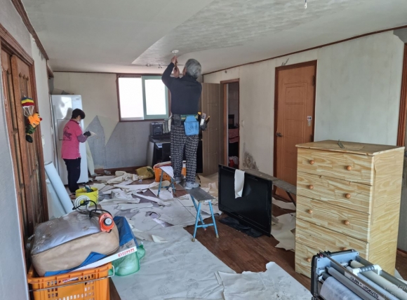 김천라이온스클럽(회장 김세호)는 18일(금) 평화남산동 저소득층 장애가구를 대상으로 집수리 및 주거환경 개선활동을 실시했다.김천라이온스클럽 회원 20여명 정도가 참여하여 보일러 수리, 도배 및 씽크대 교체 등을 지원했고, 쓰레기 정비 등의 주거환경 정비 활동을 진행했다.