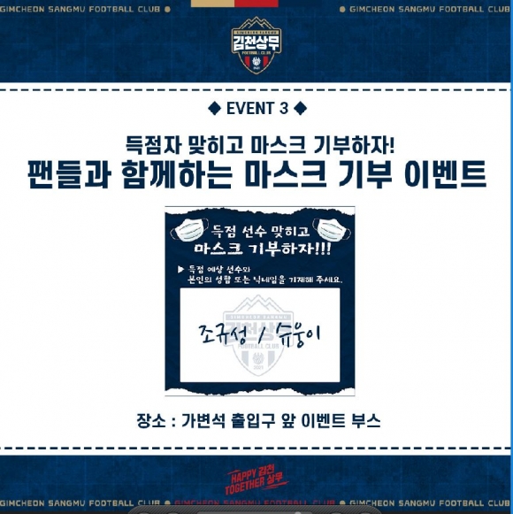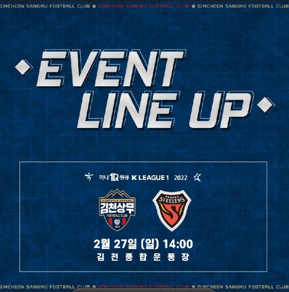 김천상무프로축구단(대표이사 배낙호)이 27일 오후 2시 김천종합운동장에서 ‘하나원큐 K리그1 2022’ 2R 포항스틸러스와 홈 개막전을 치른다. 김천상무는 지난해 K리그2 우승, K리그1 승격 이후 김천에서 치르는 첫 K리그1 홈경기에서 다양한 팬 프렌들리 이벤트로 팬들을 맞이한다.