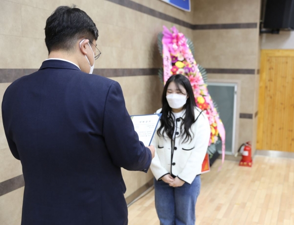 66년 전통의 간호학과를 비롯해 작업치료과, 보건복지과, 뷰티디자인과 등 4개 학과 404명의 학생이 입학한 가운데 이번 입학식에서 입학성적 우수 장학금은 최지윤(간호학과) 학생이 차지했다.입학식은 △개회사 △입학 선언 △신입생 대표 선서 △장학증서 수여 △총장 축사 순으로 진행됐다.신입생 대표 최지윤(간호학과) 양이 입학 선서를 통해 "학칙을 준수하고 교훈인 근면, 성실, 정직의 정신을 바탕으로 인격을 닦으며 학문연구를 본분으로 삼아 자랑스러운 학생이 되겠다."라고 선서했다.이에 이은직 총장은 환영사를 통해 “고된 수험생활을 잘 마무리하고 우리 대학의 새 가족이 된 신입생 여러분을 마음 깊이 환영한다."라며 "우리 대학은 코로나19 등 어려운 여건 속에서도 지속적인 혁신을 단행했고, 소중한 성과들을 이뤄 전문대학혁신지원사업에서 최우수 A등급을 획득하였다.”라고 말했다.