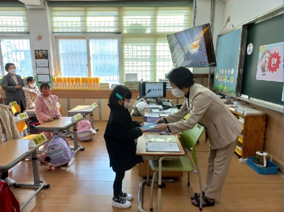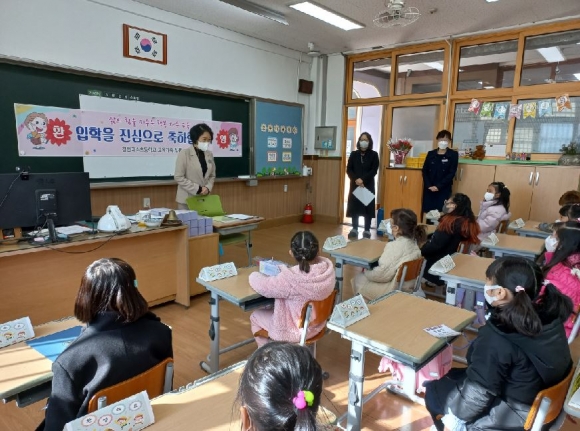 김천다수초등학교(교장 민병미)는 3월 2일(수) 신입생 26명을 대상으로 새로운 출발을 알리는 2022학년도 입학식을 개최하였다.이날 입학식은 학교 내 방역 지침 준수 및 안전한 학교 환경 조성을 위해 학부모 참석 없이 1학년 교실에서 간소하게 진행되었다.
