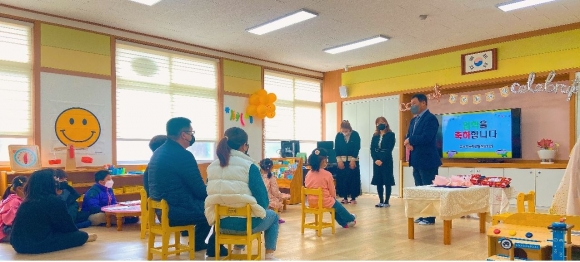 경상북도 김천시 증산면에 자리 잡은 증산초등학교병설유치원(원장 채득원)은 2022년 3월 4일(금) 유아 2명을 대상으로 2년만의 재개원식 및 입학식을 하였다. 입학식 당일 현관에서 체온 체크, 손 소독 등 방역 지침을 철저히 지키며 안전하게 입학식을 진행하였다. 신입생 2명의 유아가 유치원에 잘 적응할 수 있도록 환영과 축하의 마음을 담아 유치원 교실에 풍선과 파티 커튼, 환영 현수막 등을 배치하여 행복한 마음으로 유치원에 올 수 있도록 준비를 하였다. 원장선생님, 담임 선생님의 환영 인사와 함께 초등학교 형님 7명의 큰 박수를 받으며 인사를 나누는 시간을 가졌고, 유치원 시설물을 둘러보며 유치원 생활의 기대감을 심어 주었다. 또, 원장선생님의 입학허가와 함께 꽃다발 증정식, 입학 선물 증정식, 케이크 커팅식을 하면서 축제의 분위기를 이어갔고, 특히 원장선생님께서 유아들에게 직접 유치원 가방을 메어주며 유치원 생활의 힘찬 시작을 응원하였다. 유치원 박ㅇㅇ 어린이는 “나는 이제 증산초등학교병설유치원에 다녀요. 구불구불한 길로 어린이집까지 멀리 가지 않아서 좋아요”, 김ㅇㅇ 어린이는 “나도 이제 유치원 다녀요.”라며 기대감을 표현하였다. 본원 채득원 원장은 “2년 전, 유치원 취원 대상 유아가 없어서 유치원을 휴원하게 되었을 때 마음이 많이 아팠습니다. 유치원의 재개원을 위해 많은 노력을 한 결과로 이렇게 재개원식과 입학식을 하게 되어 무척 기쁩니다. 귀한 아이들인만큼 유치원에서 건강하고 행복하게 지낼 수 있도록 최선을 다해서 선생님들과 함께 지원하겠습니다. 학부모님! 귀한 자녀를 유치원에 보내주셔서 고맙습니다.”라고 소감을 밝혔다.