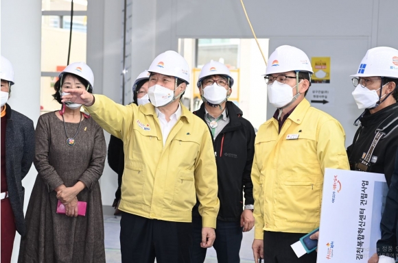 지난 16일 김충섭 김천시장은 준공을 앞두고 있는 「김천복합혁신센터 건립사업」 현장을 점검했다.이번 점검은 중대재해처벌법 시행 후 한층 강화된 안전대책 확립과 공사 막바지 차질 없는 사업 마무리를 위해 직접 현장을 점검하고자 진행됐다.