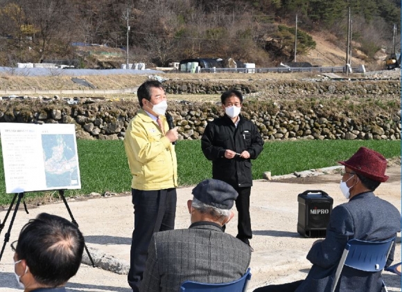 김천시(시장 김충섭)는 3월 28일 대덕면 추량 1리 가례실 마을에서 마을상수도 전면 개량공사의 사업 현황 및 향후 추진계획 등 전반적인 사업 설명 및 사업 추진에 따른 주민설명회를 개최했다.이번 주민설명회에는 코로나19 사태에도 불구하고 마을 이장님을 비롯한 100여 명의 주민이 참석한 가운데 사업 설명 및 주민 불편사항을 청취하는 자리가 되었다.‘추량 1리(가례실) 마을상수도 전면 개량공사’는 지난 2021년 송,배수관로 1,190m를 매설했고, 금년도에는 급,배수관로 1,300m를 전면 개량함으로써 마을 주민들에게 보다 나은 물을 공급하고, 마을 안 길을 전폭 포장함으로써 평소 평탄하지 못한 길로 인해 전동차를 이용하는 노인들의 통행에 불편을 덜어 안전보행이 될 것으로 보인다.대덕면 추량 1리(가례실) 마을상수도는 1978년도에 설치되어 오랜 시간이 지나 노후화된 상수도 관로를 이번에 마을상수도 전면 개량공사를 통해 마을 주민들의 오랜 숙원 사업을 해결함과 더욱 맑고 깨끗한 물 공급으로 물 걱정 없이 위생적인 식수를 공급할 수 있게 되었다.김충섭 김천시장은 “사람에게 가장 중요한 것은 물이다”라며, “노후화된 상수도 관로를 개량함으로써 주민 모두가 체감할 수 있는 안정적인 물 공급으로 모든 주민이 안심하고 마실 수 있는 수돗물 공급에 최선을 다하겠다.”라고 말했다.