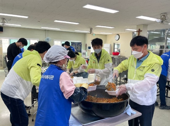 김천시 시설관리공단(이사장 김재광)에서는 사회공헌활동의 일환으로 이사장과 직원들이 참여하여 4월 11일부터 12일까지 이틀간 김천 부곡 사회복지관의 무료급식소(평화동)를 찾아 도시락 포장과 배달 봉사활동을 실시했다고 밝혔다.부곡 사회복지관의 무료급식소는 코로나19의 장기화로 인하여 비대면으로 급식을 배달하고 있으며, 시설관리공단 직원은 음식 조리, 청소 등 급식 업무를 지원하고 90여 가구에 급식(도시락)을 전달하였다.김재광 이사장은 “지역사회 감염병 전파로 인해 어려운 상황에서도 소외계층을 위하여 헌신과 수고를 아끼지 않는 복지관 관계자분들게 감사드리며, 우리 공단도 일회성으로 그치지 않고 지속적으로 공헌활동을 실천하도록 최선을 다하겠다”고 말했다.한편 김천시 시설관리공단에서는 작년부터 농촌일손돕기, 전통시장 장보기, 복지시설에 기부물품을 전달하는 등 꾸준한 사회공헌활동을 통하여 지역사회와 소통해오고 있다.