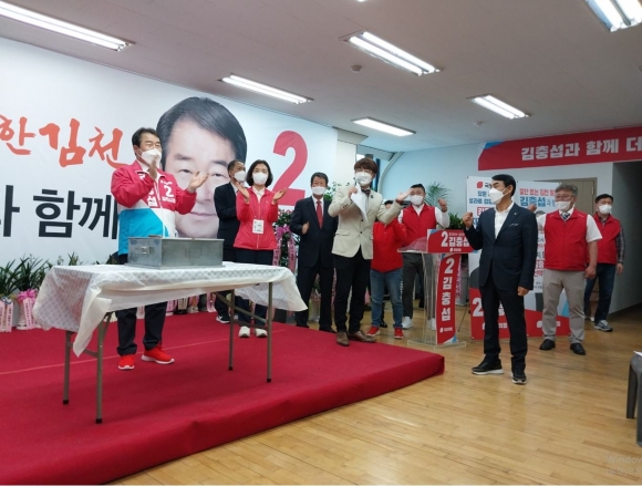 김충섭 김천시장 예비후보는 11일 재선 출마를 시작으로 4월 16일(토) 김천시 신음동 스파월드빌딩 4층에서 철저한 방역수칙을 준수하여 선거사무소 개소식을 가졌다.