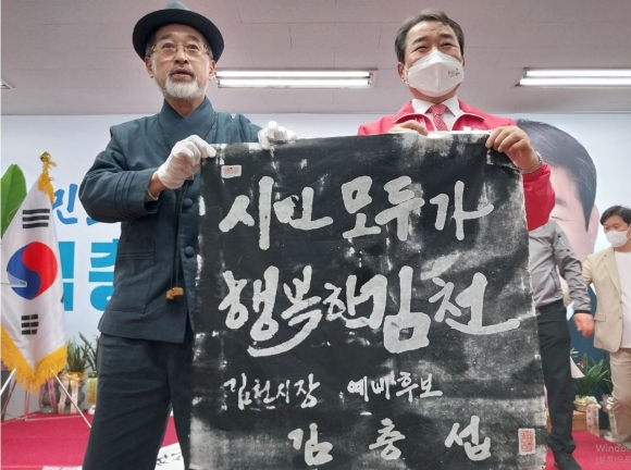재선 도전 포부와 핵심 공약으로 일자리가 풍부한 도시, 부자농촌 개인별 맞춤 복지, 김천형 복지 원도심과 혁신도시의 상생발전을 4차 산업시대를 선도하는 첨단 산업도시를, 스마트 환경도시를 만들어 김천이 전국에서 가장 살기 좋은 도시, 시민 모두가 행복한 도시를 만드는 것이 김충섭 김천시장 예비후보의 재선 도전 그리고 시민과의 약속이다.