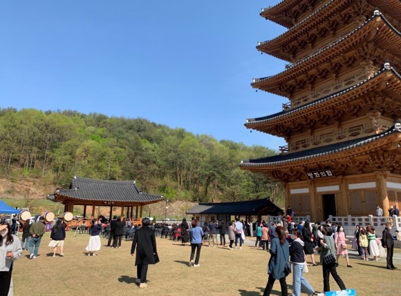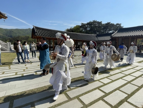 김천시는 지난 16일 사명대사공원 북암루 앞에서 올해 첫 전통혼례식을 개최했다.우리민족 고유 혼례문화 그대로 재현해 신부는 족두리를 쓰고 꽃가마를 탔고, 신랑은 사모관대를 갖춰 입었다. 이날 혼례식은 하객 외에도 사명대사공원을 찾은 많은 시민의 관심과 축하 속에서 열렸다.