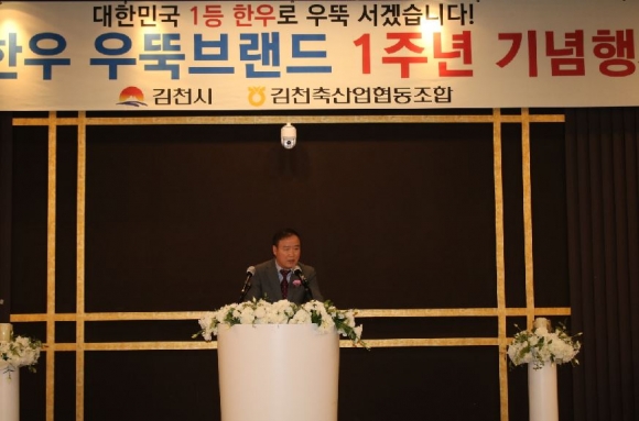 김천축산농협(조합장 김흥수)은 29일 오전 10시 김천시 한우 브랜드인 ‘우뚝’의 출시 1주년 기념 행사를 진행하였다.