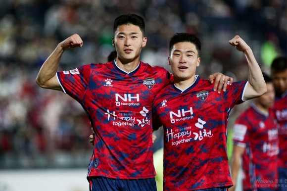 김천상무프로축구단(대표이사 배낙호)이 5일 오후 7시, 김천종합운동장에서 열린 ‘하나원큐 K리그1 2022’ 10R 강원FC과 홈경기에서 조규성의 결승골로 1대 0으로 승리했다.김천은 어린이날을 맞아 다양한 장외 이벤트들로 팬들과 함께했다. 나만의 슈웅이 만들기 이벤트는 준비한 200장의 종이는 경기 시작 전에 모두 소진됐고 티셔츠 500장 또한 일찌감치 동이 났다. 이밖에도 슈웅이 키링, 슈웅이 머리띠, 야광 응원봉, 구단 에코 텀블러 등 구단에서 준비한 상품들이 모두 소진됐다.어린이 팬들의 열띤 성원 속에 시작된 경기에서도 김천은 박진감 넘치는 경기력으로 강원을 상대했다. 4-2-3-1 포메이션으로 강원에 맞서 조규성을 원톱에 두고 서진수-고승범-권창훈이 2선을 책임졌다. 이영재-권혁규는 3선을 꾸렸고 포백라인은 유인수-김주성-정승현-강윤성의 몫이었다. 골키퍼 장갑은 황인재가 꼈다.김천은 전반 내내 강원과 김천은 슈팅을 주고받으며 치열하게 공방전을 이어갔다. 김천이 공격 점유율을 높이며 강원을 위협했지만 소득은 없었다. 전반은 득점 없이 마무리됐다.김천은 후반 시작과 함께 서진수-권창훈을 빼고 박지수-김한길을 투입했다. 김천은 후반 초반 공격에 불을 지폈다. 후반 5분 만에 문전에서 조규성이 시도한 헤더는 골대를 강타했다. 치열한 공방전 끝에 김천의 선제골이 나왔다.후반 17분, 강윤성이 얻어낸 페널티 킥을 조규성이 깔끔하게 성공시키며 김천이 1대 0으로 앞섰다. 선제골 이후 김천은 계속해서 강원의 골문을 두드렸지만 추가 득점은 없이 1대 0으로 경기를 마쳤다.한편, 김천은 오는 8일 제주월드컵경기장에서 제주유나이티드와 ‘하나원큐 K리그1 2022’ 11R 원정경기를 치른다.